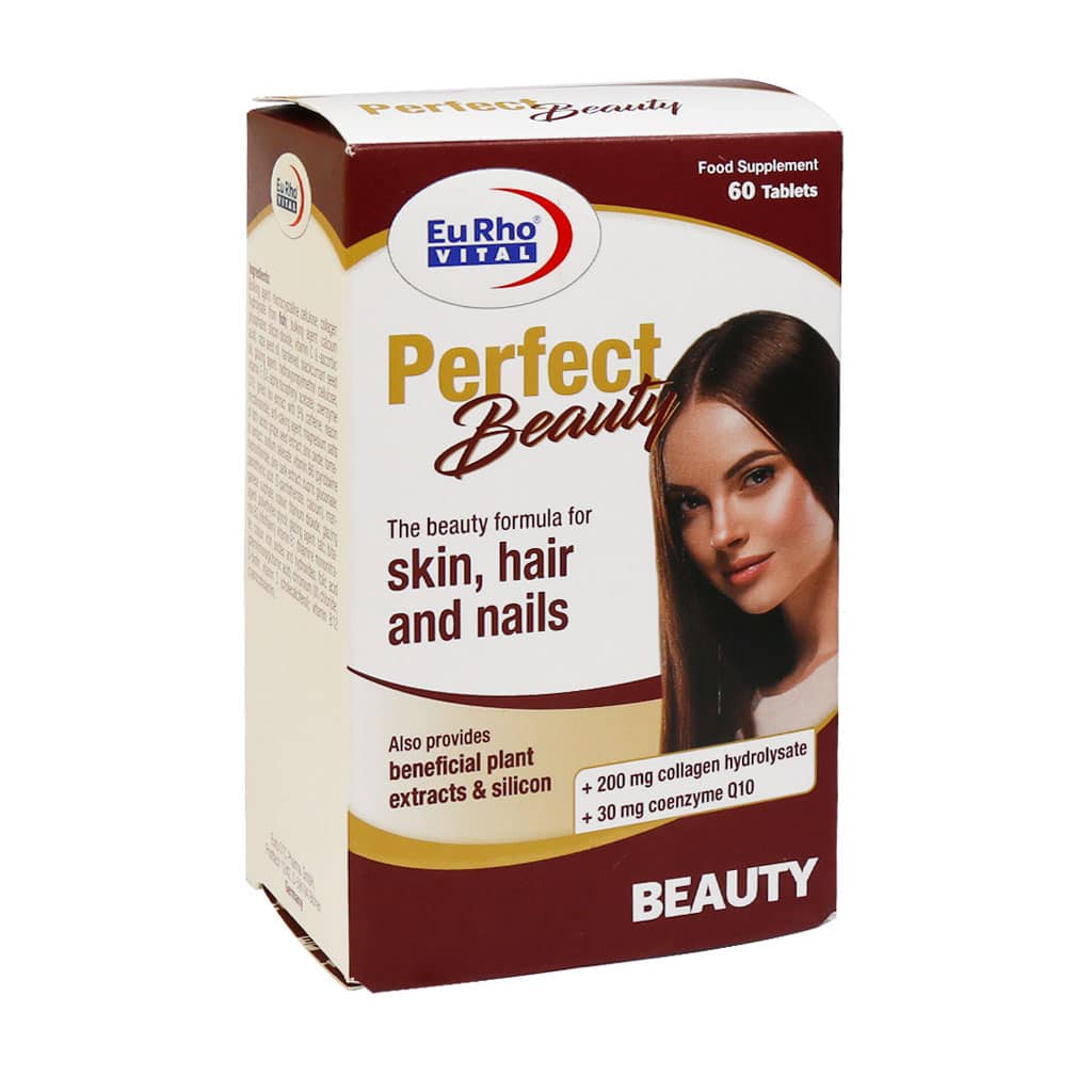 قرص پرفکت بیوتی یوروویتال محصولی است که به طور تخصصی جهت کمک به حفظ سلامت پوست، مو و ناخن فرموله شده است. به جز ویتامینها و مواد معدنی در این فرآورده کلاژن دریایی، کوآنزیم کیوتن و عصارههای طبیعی از گیاهان نیز وجود دارد.